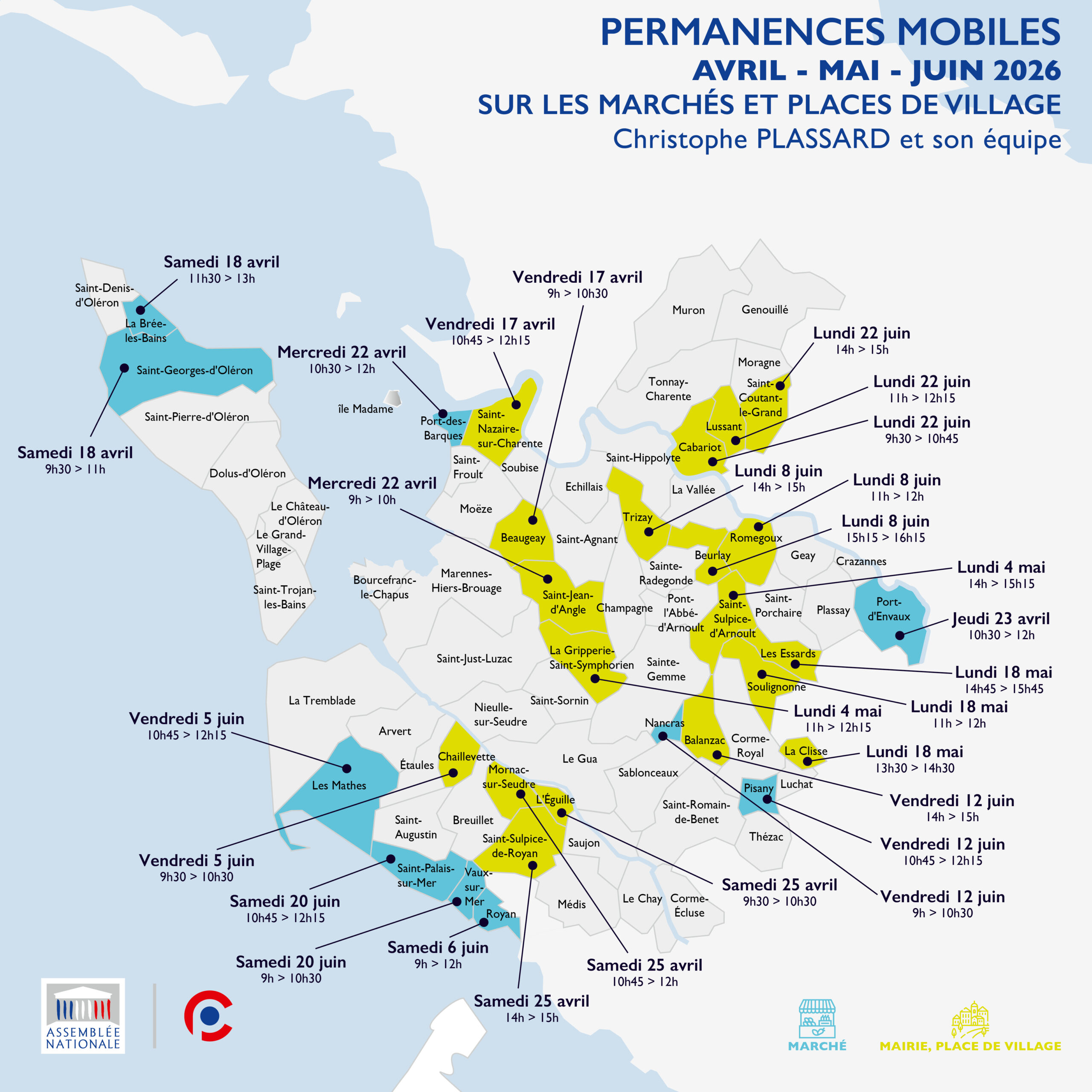 La carte des rendez-vous de la Permanence Mobile, pour le second trimestre 2026.